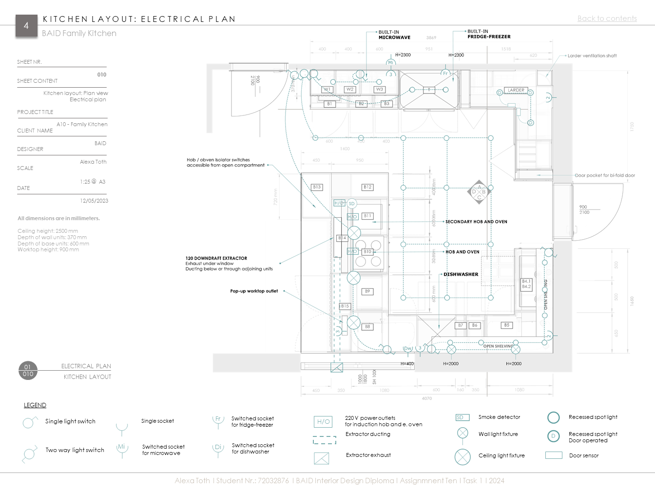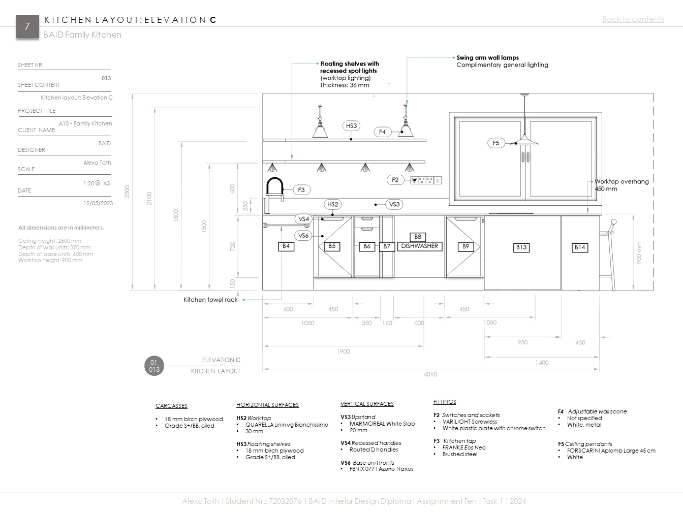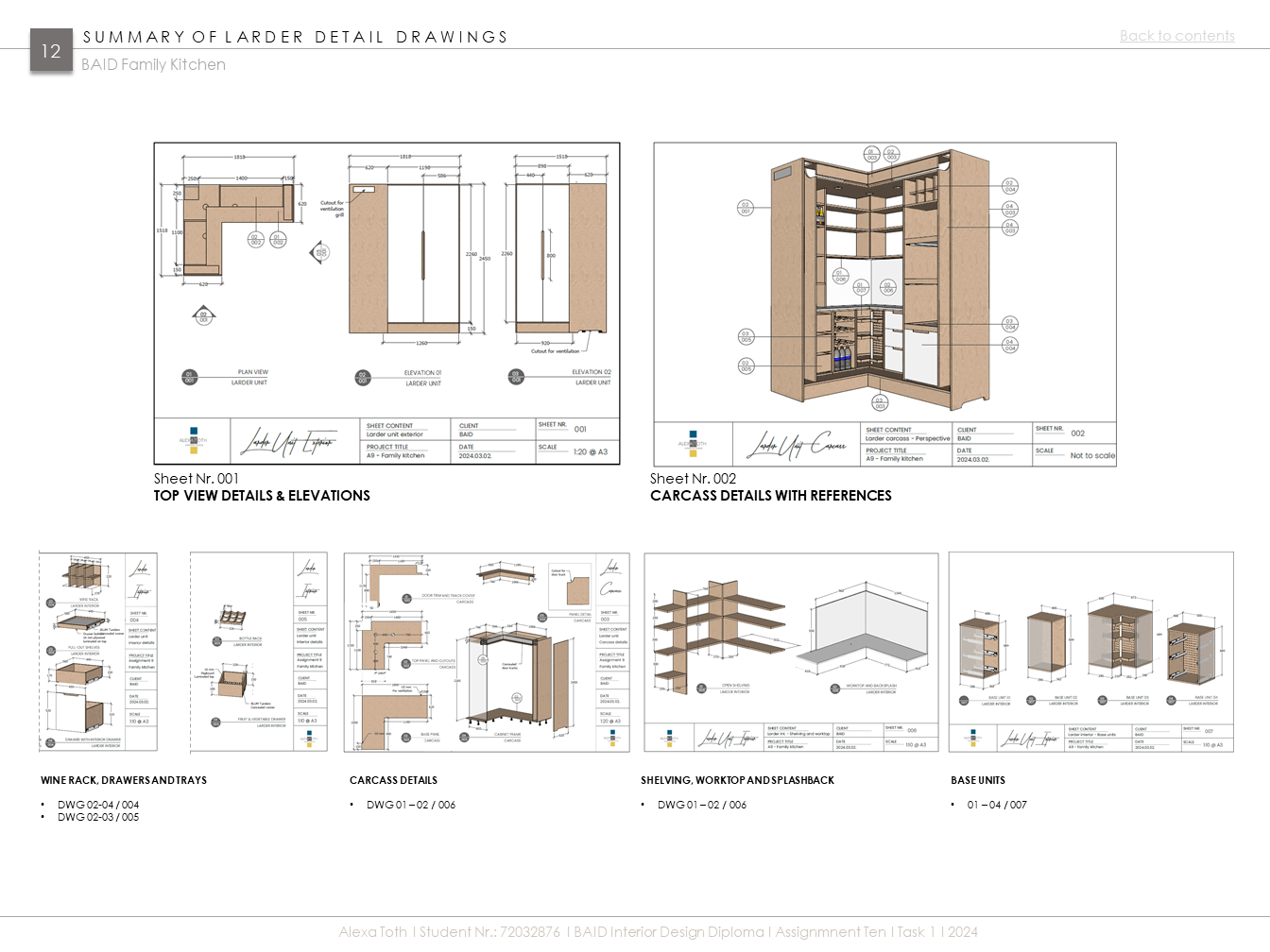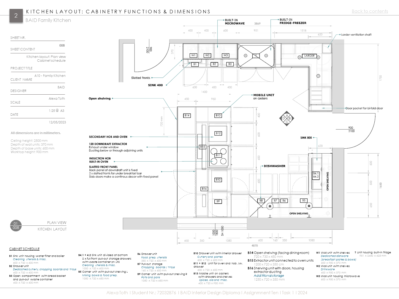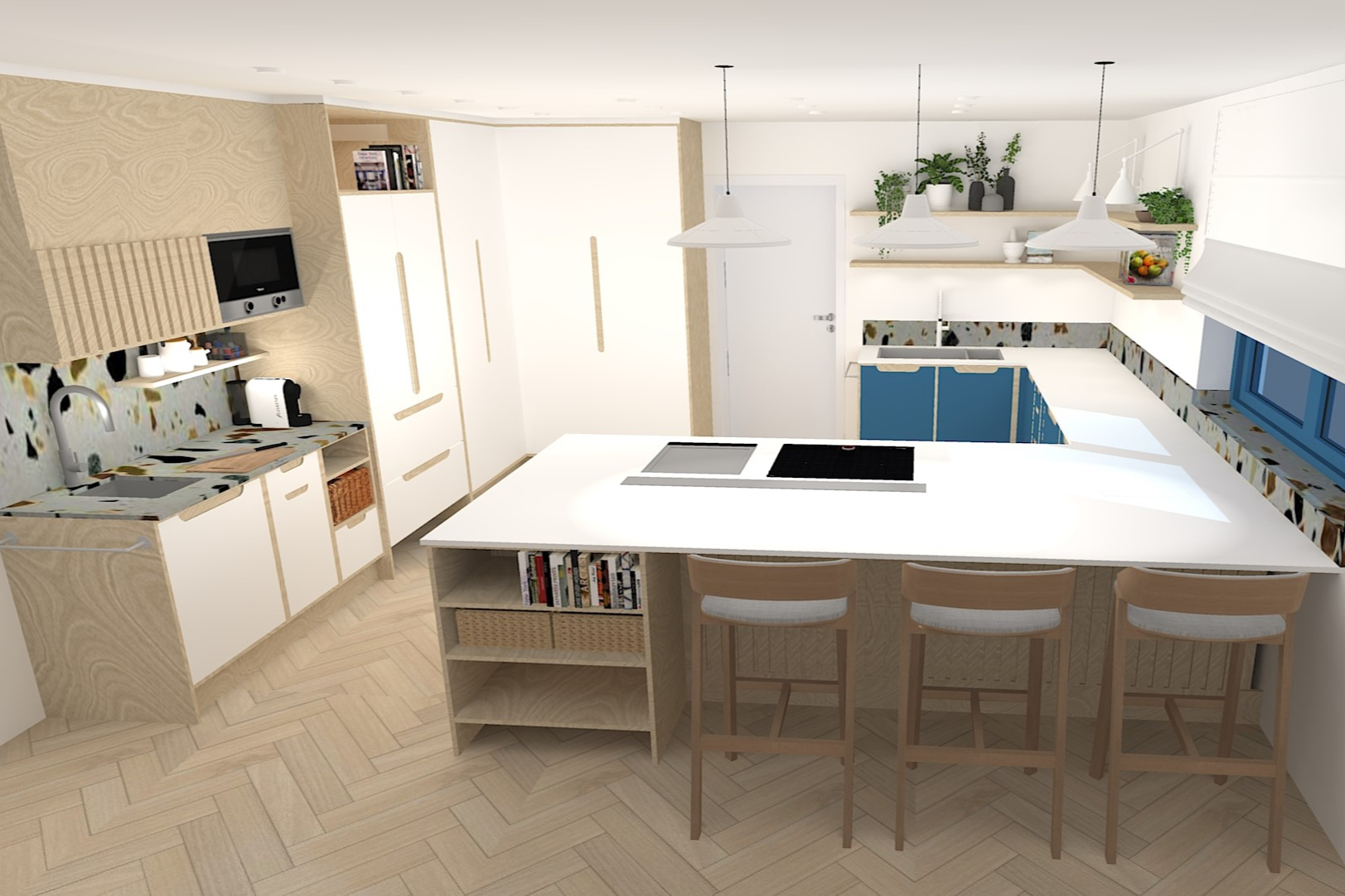 Extenzív kutatómunka inspirálta konyha egy aktív, kétgyerekes család igényeihez igazítva. Az 50-60-as évek modern stílusát és anyaghasználatát (pl. rétegelt lemez), valamint mai, innovatív megoldásokat és anyagokat ötvöz (pl. zsebes harmonikaajtó. ujjlenyomatmentes FENIX és kompozit anyagok). A többfunkciós kamraszekrény a feladat egyik fő pillére volt.