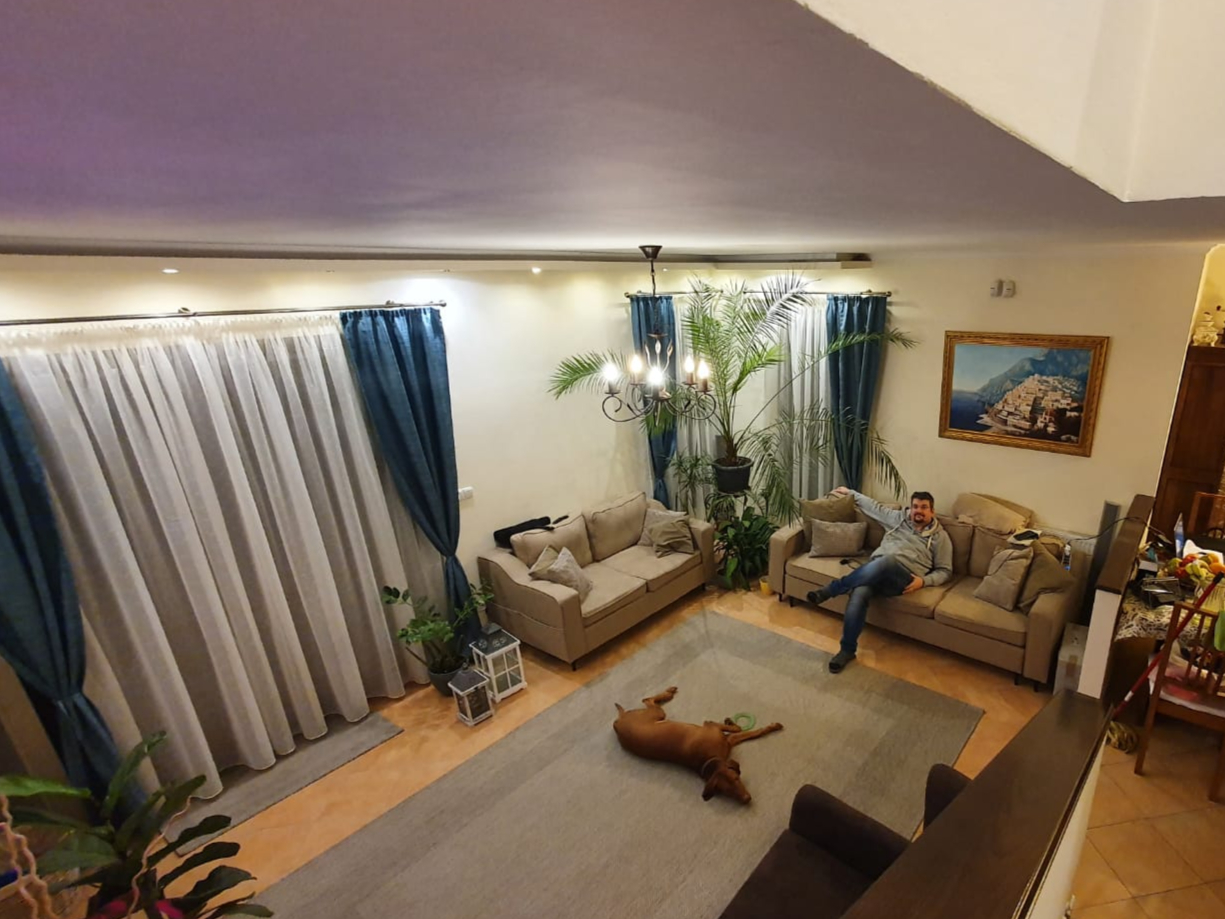Első munkáim egyike : nappali berendezése, egyedi függönyök.